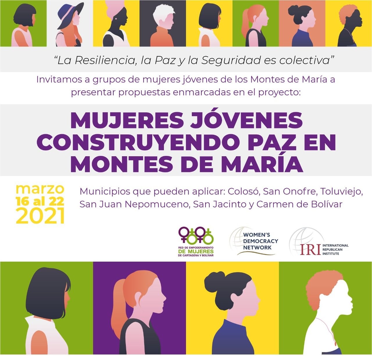 Se amplia el plazo hasta el viernes 26 de marzo para presentación de propuestas del Proyecto Mujeres Jóvenes Construyendo Paz en Montes de María